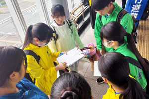 実際にペットと一緒に避難する流れを体験し、ペットを連れて避難する際の難しさや、災害時に街中でどのような場所が危険になるかを考えながら行動します。