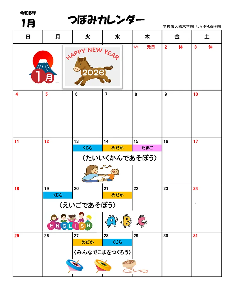 1月のつぼみの予定はこちらになります