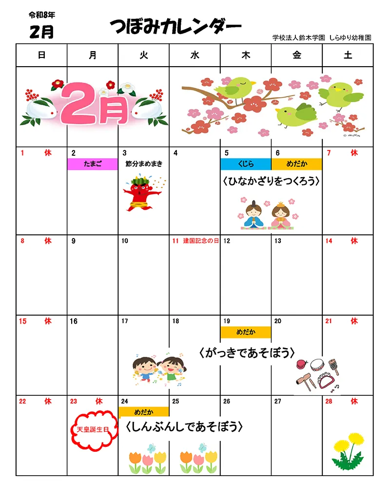 2月のつぼみの予定はこちらになります