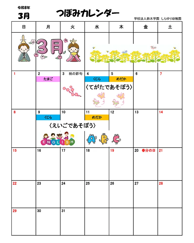 3月のつぼみの予定はこちらになります
